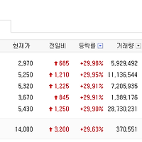 | 오늘의 상한가 종목
